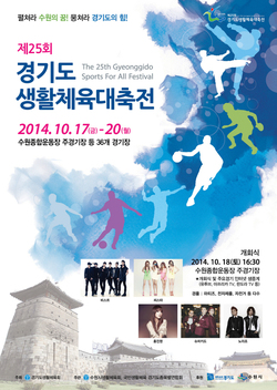 경기도 생활체육인들이 모여 화합과 우정을 다지는 제25회 경기도생활체육대축전이 17일부터 20일까지 4일 동안 수원종합운동장 주경기장 등 수원시내 36개 경기장에서 열린다.