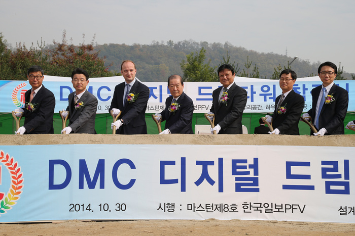 박홍섭 마포구청장(사진 중앙)이 30일(목) 오전 10시 30분, 마포구 상암동 DMC(B2-2필지)에서 열린 한국일보 디지털드림타워 착공 행사에 참석했다.
