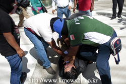 15일 멕시코 게레로주 칠판칭코의 Ayotzinapa 교대생 43명 실종에 대한 정의와 설명에 요구하는 시위가 계속 이어지고 있다.