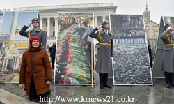 우크라이나 키예프 인디펜던스 광장에서 러시아 반군과의 대항으로 사망한 우크라이나 자위대원의 장례식이 치뤄지고 있다.