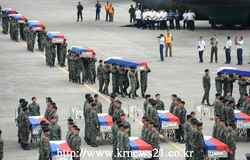 29일(현지시간) 마닐라 군사 기지에서 지난 이슬람반군과의 교전으로 숨진 필리핀 경찰 특공대의 장례식이 거행되었다.