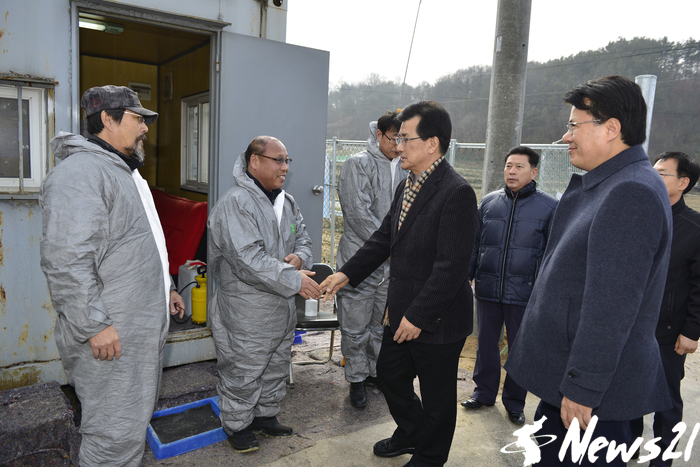 이 지사는 이 자리에서 “축산농가 출입 시 무엇보다 철저한 소독이 중요하다”고 강조하며 “더불어 3월 중순경 이면 신형백신(0형 혈청형 신형 백신)이 보급될 것이며, 더불어 AI 예방에도 신경 써 달라”고 당부했다.