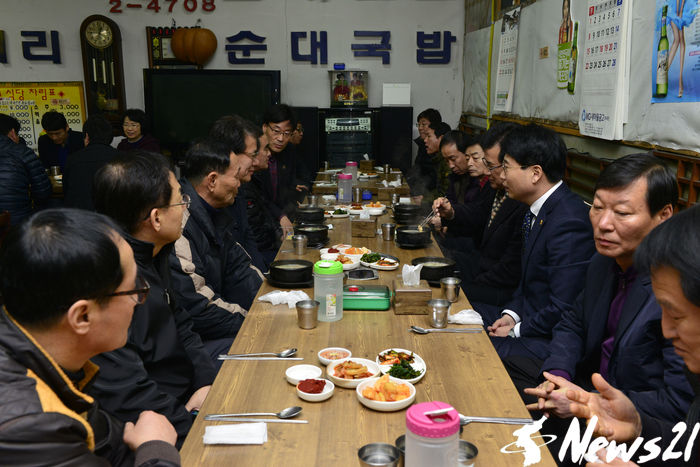 이후 이 지사 일행은 중앙전통시장으로 자리를 옮겨 상인회 관계자들과 국밥으로 점심을 함께하면서 애로사항을 들었다.