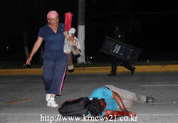 멕시코 게레로주 아카풀코에서 실종된 43명에 대한 정의와 설명을 요구하는 시위 중 경찰과 충돌이 벌어졌다.