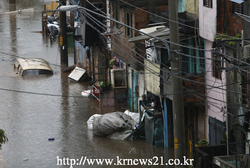 브라질 상파울로에 며칠째 폭우가 쏟아서 자동차가 물에 갇혀있다.