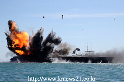 이란 정예군인 혁명수비대가 걸프해역 전략 요충지인 호르무즈 해협에서 군사 훈련을 하고 있다.