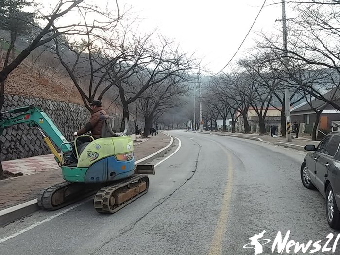 주민들은 지난 2월 25일 이른 아침부터 벚꽃나무에 비료주기 등 좋은 벚꽃을 피우기에 공을 들였다.
