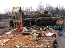 우크라이나 도네츠크 공항 입구 인근에 친러 반군에 의해 점령 당한 모습이다.