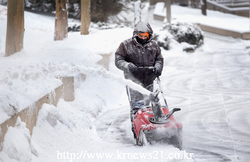미국 일리노이주 시카고에서 한 남성이 제설작업을 하고 있다.