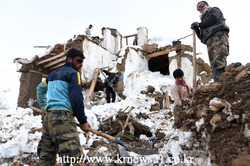 아프가니스탄 수도 카불 북부에 위치한 판즈시르주 압둘라 킬 마을의 다라 지방에서 눈사태로 인해 붕괴된 자신의 주택을 수색하고 있다.