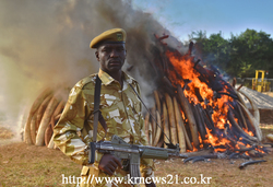 케냐 나이로비 국립 공원에서 코끼리 상아 15톤을 소각했다.