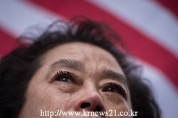 6일 주한 미국 대사관 밖에서 마크 리퍼트 대사관의 빠른 쾌유를 비는 집회를 하는 동안 한 여성이 눈물을 흘리고 있다.