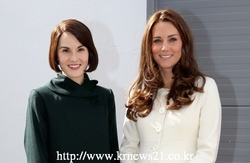 영국 캐서린 공작 부인은 영국 런던 일링 스튜디오의 영국 드라마 '다운튼 애비' 세트장을 방문했다.