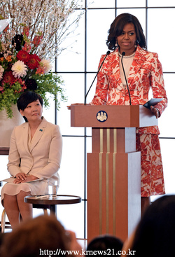 미국 버락 오바마 대통령의 아내인 미셸 오바마가 일본을 방문해 신조 아베 총리 아내 아베