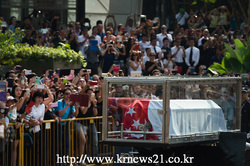 싱가포르 리콴유 전 총리의 장례식이 거행되는 동안 시민들이 함께 하고 있다.