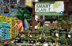미국 캘리포니아주 알람브라의 홈디포 전시장에서 한 남성이 가뭄에 내성이 있는 식물을 고르고 있다.
