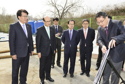 정 차관은 원주지방환경청 관계자로부터 매립장 현황과 관리상태, 앞으로의 대책을 듣고 이근규 제천시장, 황계영 원주지방환경청장 등과 함께 (주)에너지드림 매립장 시설을 둘러봤다.