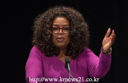 미국 워싱턴 DC 워너 극장에서 열린 마야 안젤루의 제막식에서 방송인 오프라 윈프리가 연설을 하고 있다.