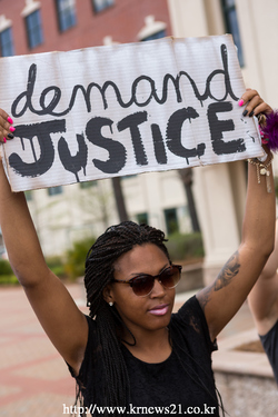 미국 사우스캐롤라이나주 시청 앞에서 경찰에 의해 숨진 흑인 월터 스콧에 대한 정의 요구를 위해 시위대가 모였다.