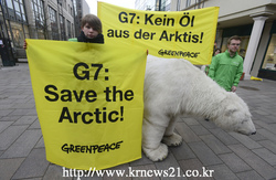 6월에 독일에서 열리는 G7 정상회담을 앞두고 독일 뤼벡에서 그린피스 활동가 들이 "북극곰 보호 및 북극해 오일 방지"를 촉구하는 시위를 벌였다.