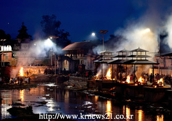 네팔 카트만두에 위치한 바그마티 강 인근에서 네팔 지진 희생자 장례식이 진행되고 있다.