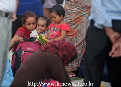네팔 수도 카트만두에서 일어난 지진으로 영향을 받은 주민들이 자파 지역으로 버스를 통해 약 600km 이동해 도착했다.