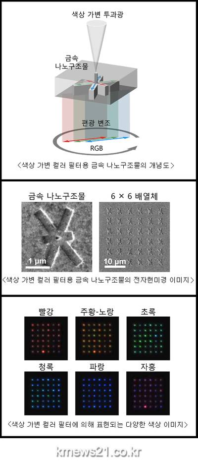 연구팀은 이러한 색상 고정형 컬러 필터의 한계를 극복하기 위하여 공진기(cavity) 구조와 나노 구멍 구조가 결합된 금속 나노구조물을 제안함으로써 한 개의 컬러 필터에서 여러 가지 색상을 표현해 낼 수 있음을 최초로 보여주었다.