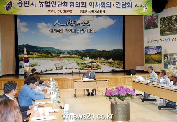 ▲ 용인시 농업인단체협의회 간담회용인시는 지난 28일 농업기술센터 대강당에서 농업인단체 대표 25명이 참석한 가운데 농업인단체협의회 이사회의 및 용인시장 초청 간담회를 개최했다고 밝혔다.