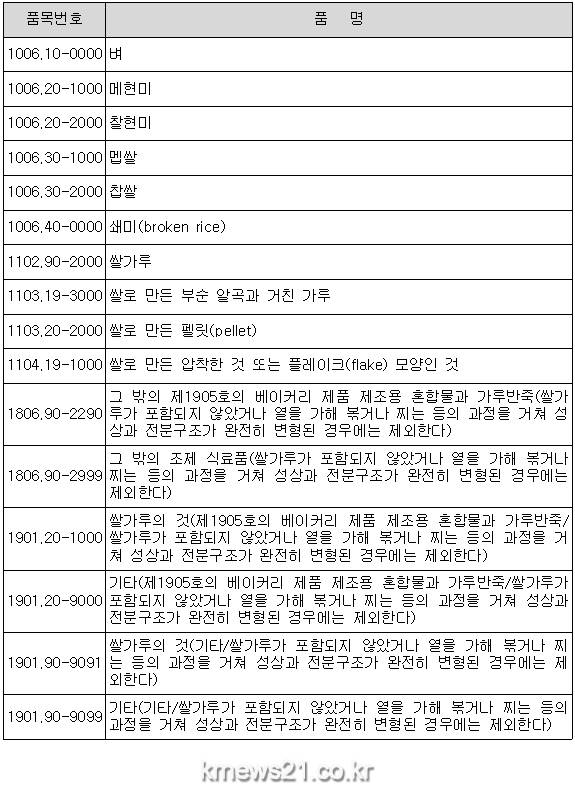 <쌀 관세화 16개 품목>
