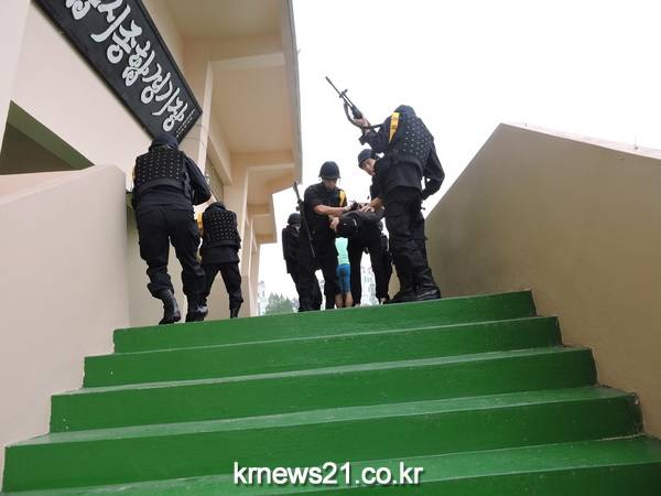 최근 IS(이슬람국가)가 이라크 점령지에서 자폭테러에 이용하기 위해 어린이들 500여명을 납치하는 사건이 발생하는 등 다수를 상대로 하는 테러가 때와 장소를 가리지 않고 세계 곳곳에서 발생하고 있어 테러로부터 다중의 안전을 지켜야 하는 대테러 훈련의 중요성이 그 어느 때 보다 증가하고 있다. 따라서 이번 훈련은 테러범이 인질을 잡고 경기장을 폭파하겠다며 협박하는 상황을 설정하여 경∙군∙소방∙지자체가 유기적인 협력 체제하에 각자 맡은 역할을 수행하여 인질을 안전하게 구출해내는 실전과 같은 훈련으로 실시되었으며 앞으로 경찰 작전태세 및 테러대응체계를 확립해 나간다는 방침이다.