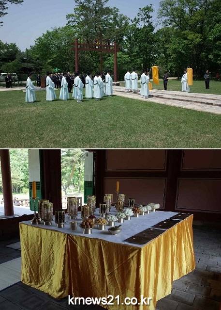 ▲ 조선왕릉 제향 행사(위), 제사 음식을 차려놓은 모습(아래)문화재청 조선왕릉관리소는 조선 건국 이래 600여 년을 이어온 왕릉 제향의 의미를 되새기고 잔치나 제사 때에 법식에 따라 음식을 상 위에 차림인 제수진설(祭需陳設)을 체험해 보는 행사를 오는 6일 오후 1시부터 초등학생 4~6학년을 대상으로 서오릉에서 개최한다.