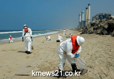 ▲ 미국 레퓨지오 해안서 유출된 기름 청소가 진행되고 있다. ⓒAFP미국 캘리포니아주 샌타바버라 인근 러푸지오 해안에서 기름 유출로 인한 청소 작업이 진행되고 있다.