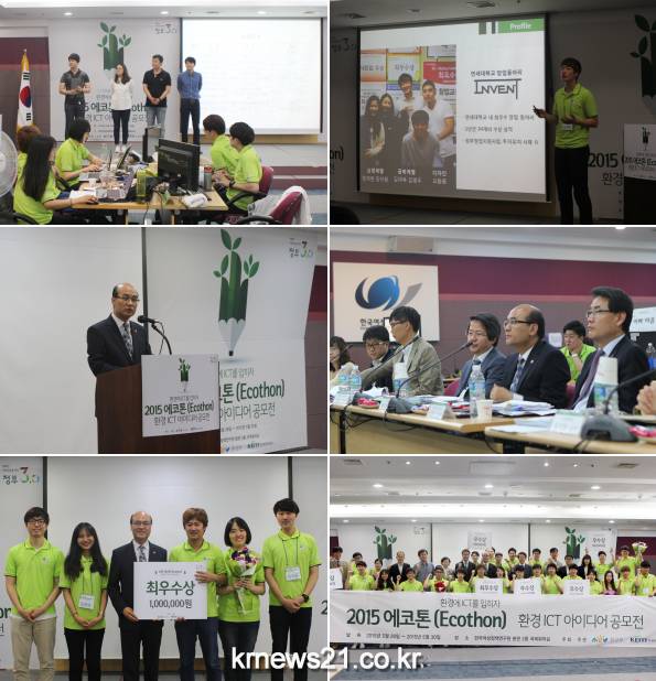 공모전은 4월 20일부터 5월 19일까지 접수받은 61개의 아이디어 중 1차 심사를 통과한 6개 작품을 만든 팀들이 행사장에 모여 1박 2일간 ‘환경에 ICT를 입히자’는 구호 아래 최종 결선을 진행했다.