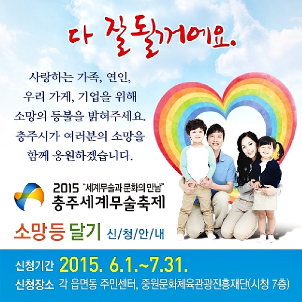 2015 충주세계무술축제가 6월 1일부터 ‘소망등 달기 행사’ 신청 및 접수를 시작으로 본격적인 축제준비에 들어간다.