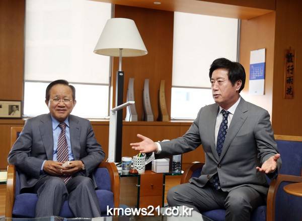 ▲ 일진그룹정찬민 용인시장은 4일 서울 마포구 도화동에 소재한 일진그룹 사옥을 전격 방문해 허진규 회장을 비롯한 임원진과 면담을 갖는 등 기업유치를 위한 발품행정을 펼쳤다.
