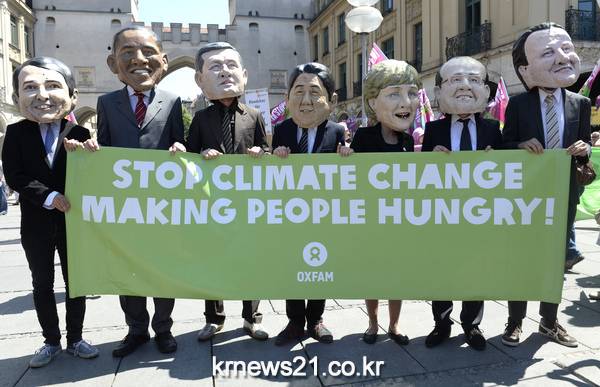 ▲ 독일에서 G7 가면을 쓴 활동가들이 정상회담 반대 집회를 열었다. ⓒAFP독일 남부 뮌헨에서 G7 정상들의 가면을 쓴 활동가들이 정상회의 반대 집회에 참여했다.