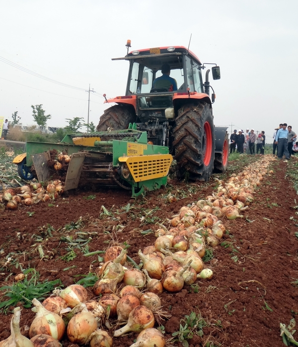 군은 노동인구 부족과 고령화로 인한 양파 수확의 어려움을 극복하고 비용을 절감하기 위해 지난해부터 기계화를 추진했다.