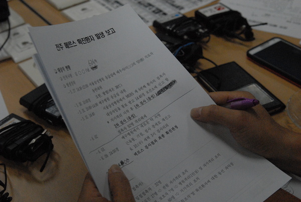 추진상황 감염자의 심층 역학조사를 위해 공보의 역학조사관 2명 긴급 추가 배치 순창 장덕리 마을 출입통제(계속) : 공무원, 경찰 5인 1조 3교대 자가격리자에 대한 시․군별 밀착관리 (1일 2회이상 출입통제 및 증상유무 확인) 총리권한대행 주재 메르스 대응 관련 지방자치단체장 간담회의 (행정부지사,6.10.) 복지부 주관 메르스 확산 방지를 위한 중앙-지자체 통합회의 (6.10.) 전라북도 방역협회 : 순창 장덕리 마을과 학교 등 살균 소독 (4개조 13명) 개인보호구 지원 : 전북 경찰청 레벨D 500세트, 전주시보건소 마스크 2천개