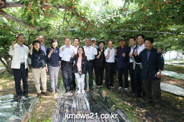 ▲ 체리농장화성시의회(의장 박종선) 의원들은 2015. 06. 10일 송산 체리 재배 현장을 방문하였다.