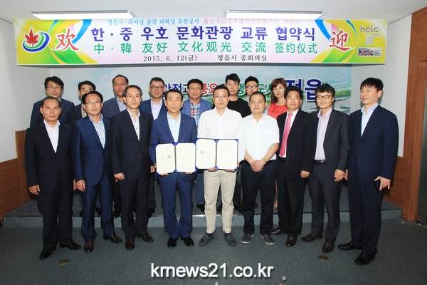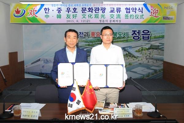 ▲ 정읍-정읍시.중국하이닉피혁성유한공사-우호문화관광교류MOU체결이는 정읍와 중국 국영기업인 하이닝중국피혁성유한공사(대표 런유파, 이하 하니닝피혁성)가 지난 12일 ‘ 한․중 우호 문화관광 교류 양해각서 MOU’를 체결한데 따른 것이다.