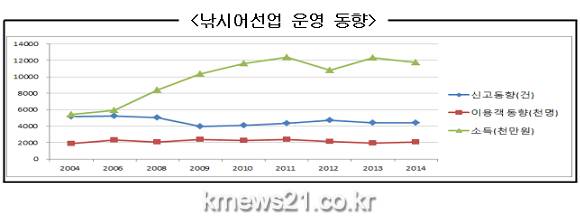 ▲ 안전한 바다여행 표지(이미지출처:해양수산부)지난해 낚시어선 이용객은 다소 증가하였으나, 낚시어선업자의 불법행위는 크게 감소한 것으로 나타났다. 해양수산부는 이 같은 내용을 담은 ‘2014년 낚시어선업 운영현황’을 지난 5일 발표했다.