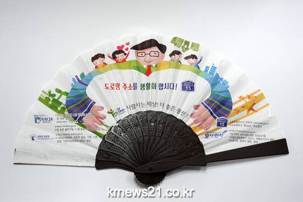 이 부채는 에너지 절약, 민원행정 홍보 등을 목적으로 제작한 것. 부채 한 쪽 면에 인터넷에서 각종 증명서류를 ‘민원24’와 도로명주소 등 이용방법을 이해하기 쉽게 설명해놓아 주민들이 더위를 식히면서 자연스럽게 민원행정에 접근할 수 있도록 기대하고 만들었다.