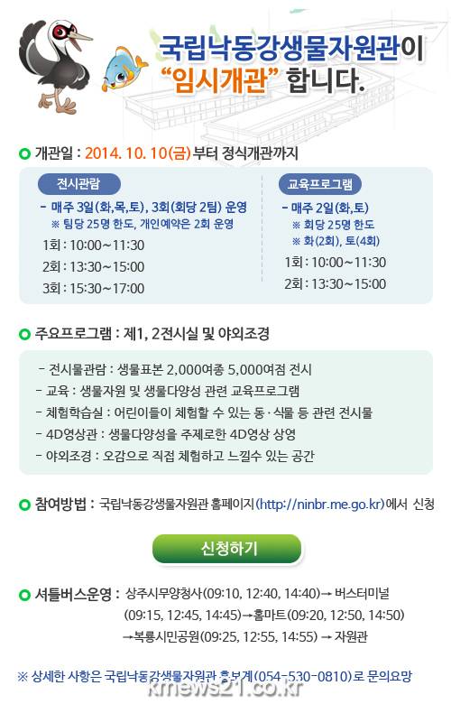 관람신청은 낙동강생물자원관 홈페이지(http://nnibr.me.go.kr)에서