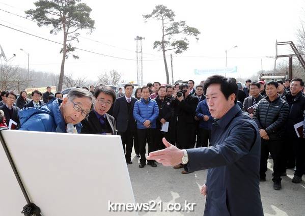 정찬민 시장은 지난 2월 23일 간부공무원과 함께 백암면 근곡리 일원 창고 부지조성 현장을 찾아 민원현장회의를 갖고 민원해결 현황을 점검했다. 이날 회의는 간부공무원부터 주민과 소통하는 현장행정에 솔선수범, 전 부서에 확산하고 실효성 있는 행정을 실천한다는 방침에 따라 마련됐다.