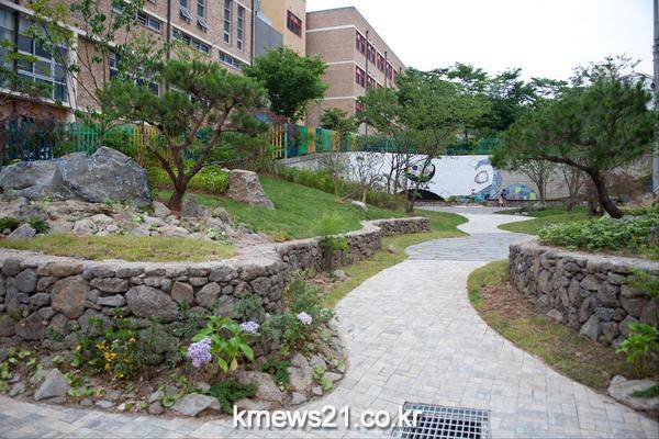 특히, 진월 국제테니스장 주변 힐링경관숲은 도시정원의 대표 사례로, 진제초교 앞 경작지와 도로 절개지로 방치돼온 공간을 토지 소유자인 고운건설(주)(대표 이권수)의 동의를 받아 조성됐다. 우리나라 산수 절경을 표현한 바위를 배치하고 소나무, 수양단풍 등 5400여 그루와 섬백리향 등 17종의 야생화가 어우러진 풍경을 보여주고 있다.