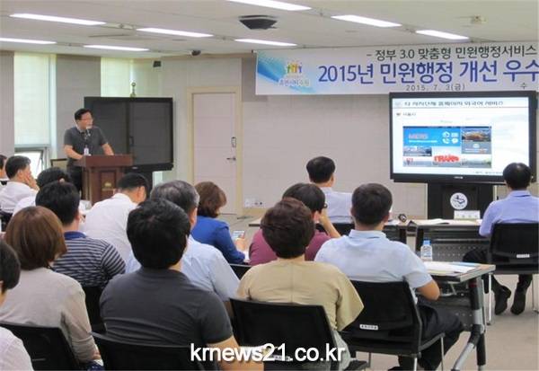 지난 3일 열린 ‘2015년 민원행정개선 우수사례 경진대회’는 시 산하 전 부서에 거쳐 접수된 22개부서의 우수사례에 대하여 사전심사를 거쳐 선정된 10개부서의 우수사례 발표로 진행됐다.