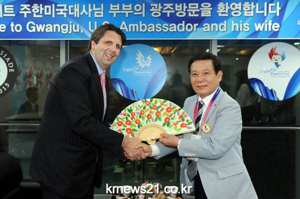 3일 광주하계U대회 개막식에 참석한 마크 리퍼트 주한 미국 대사가 행사 시작에 앞서 윤장현 광주광역시장과 접견하고 이같이 밝혔다.