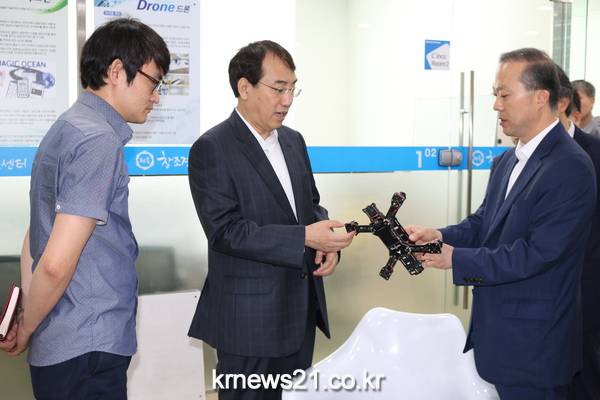 이날 혁신센터 방문은 전북대에서 이뤄진‘창조경제로 미래를 대비한다’는 초청특강에 앞서 전북도 이형규 부지사가 주재하는 창조경제혁신센터 활성화를 위한 입주기업 및 센터 팀장과의 간담회에 함께한 것이다.