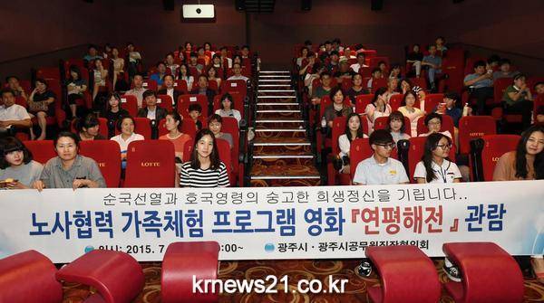 광주시 공직자 및 가족 150여명은 지난 9일 노사협력 가족체험 프로그램으로 『영화 연평해전』을 롯데시네마 광주터미널 관에서 관람했다.