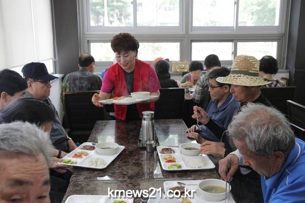 누리봉사단은 매월 한차례 이상 정기적으로 꽃밭정이 노인복지관을 찾아 김영현 여성위원장을 비롯하여, 여성위원들이 어르신들에게 사랑담은 따뜻한 배식봉사활동을 펼치고 있습니다.